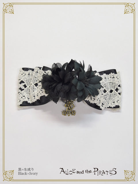 - 黒リボン×生成レース×黒お花コサージュお花コサージュ