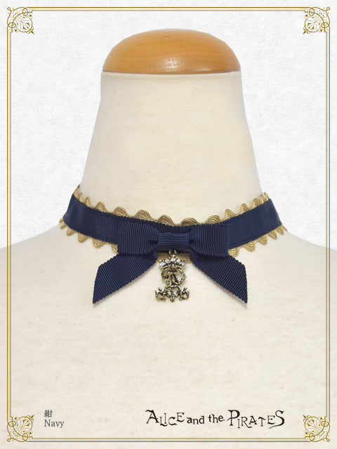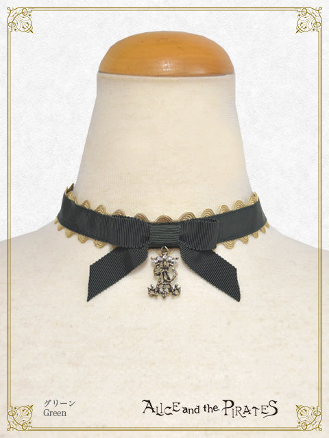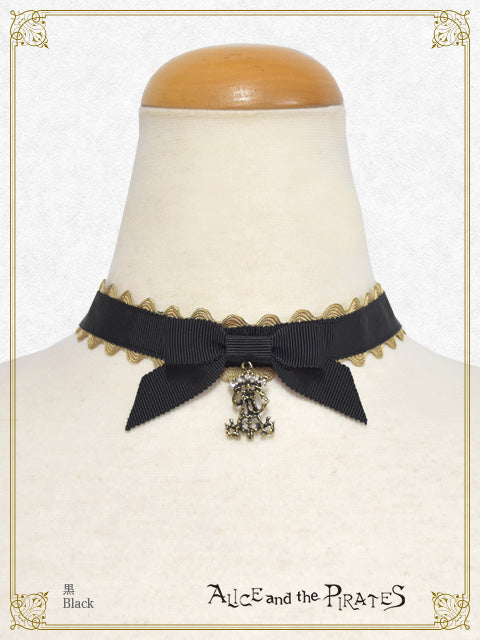 細身のグログランリボンに山道テープ、PIRATESオリジナルチャームをあしらったシンプルなおリボンチョーカーです。