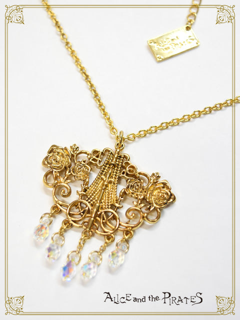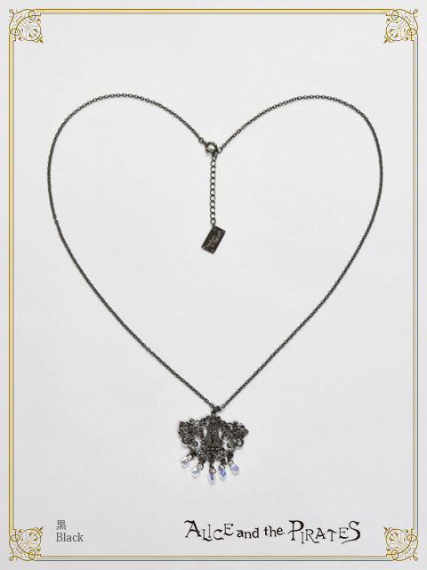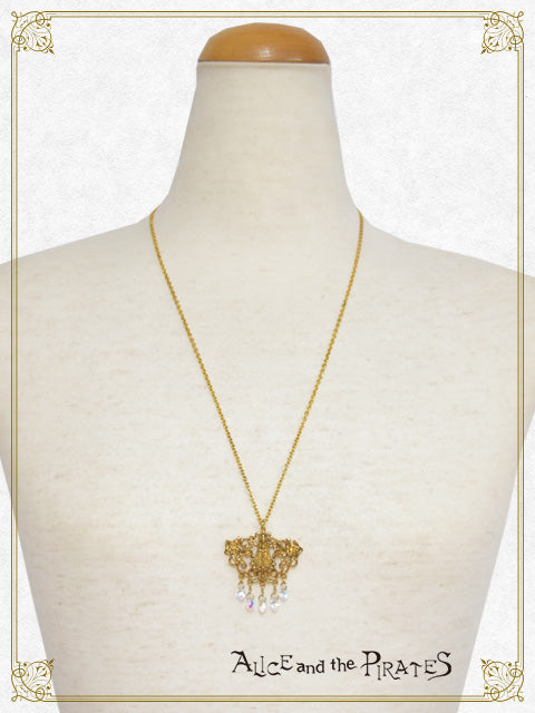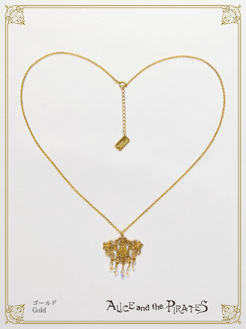 キラキラと輝きながら揺れるクリスタルが印象的な、シャンデリアの繊細なモチーフを表現したオリジナルパーツを使用したネックレスです。