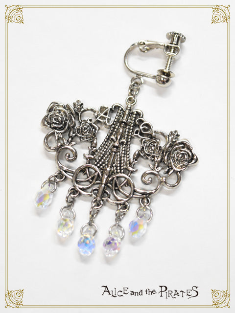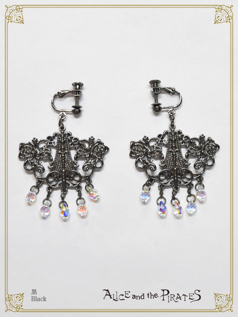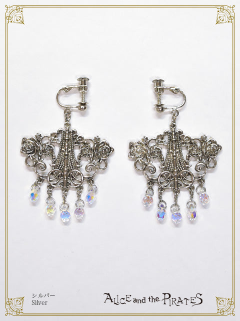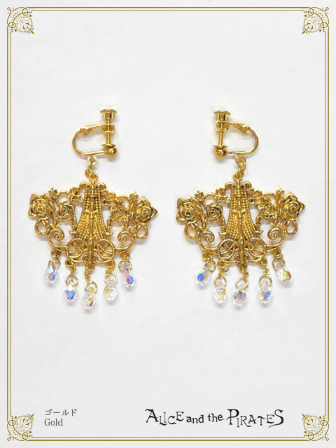 キラキラと輝きながら揺れるクリスタルが印象的な、シャンデリアの繊細なモチーフを表現したオリジナルパーツを使用したイヤリングです。