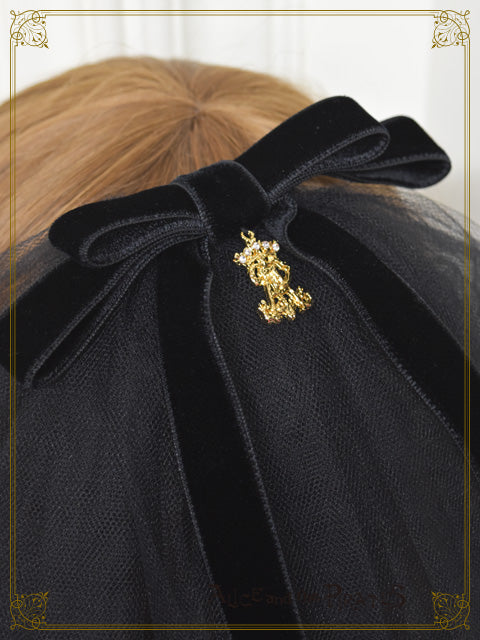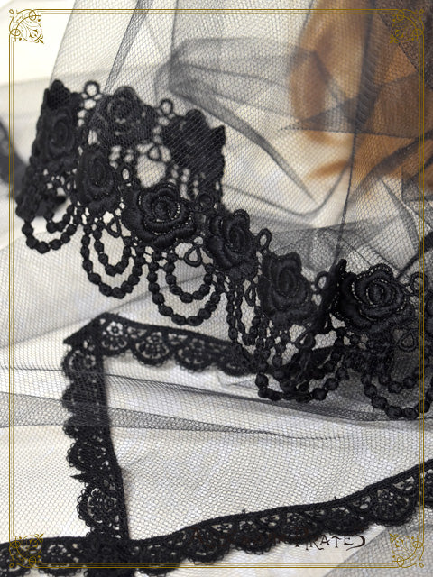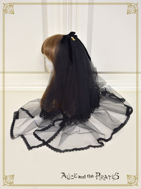 ソフトチュールを重ねたボリューム感が華やかなヴェールには、トップ部分に別珍素材のおリボンとPIRATESオリジナルパーツをプラス♪