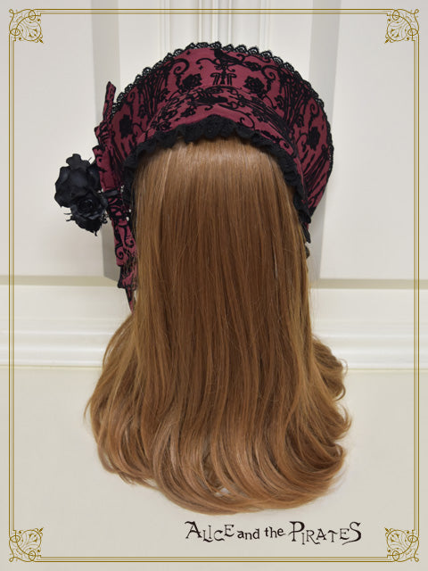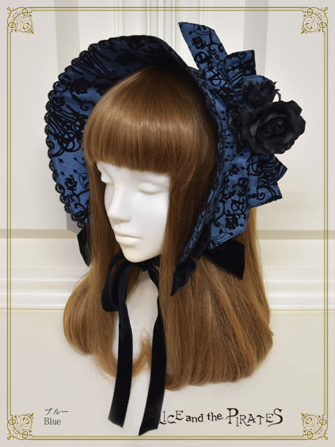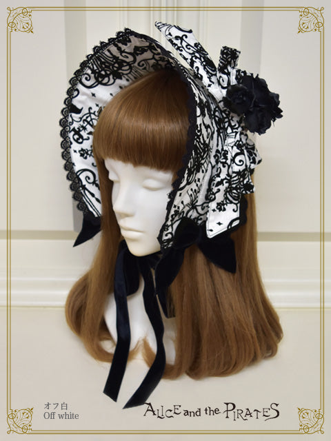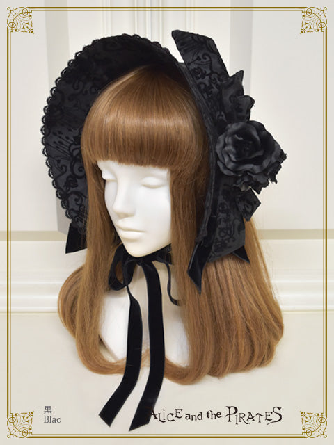 お取り外し可能な柄おリボン&薔薇コサージュがお上品で、コンパクトなブリムのデザインがクラシカルな印象のボンネットです。