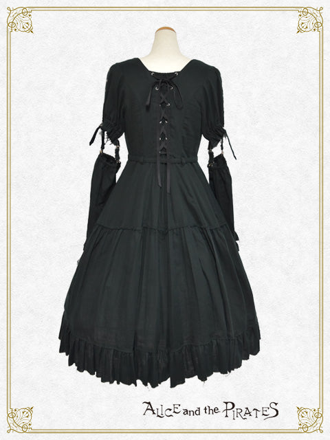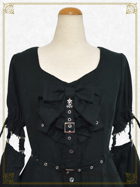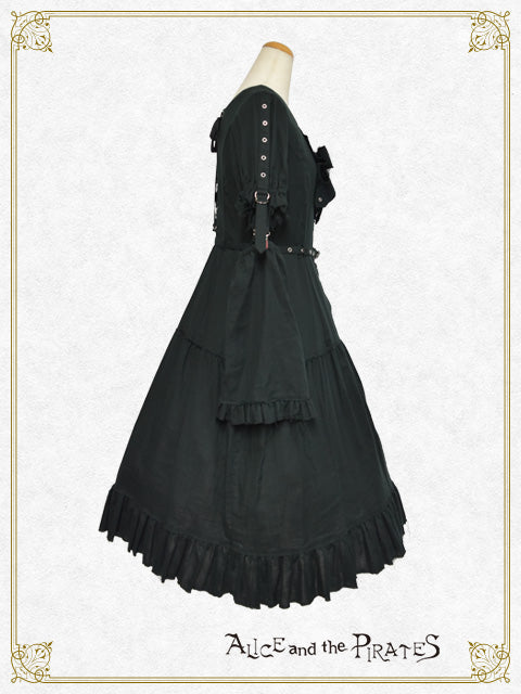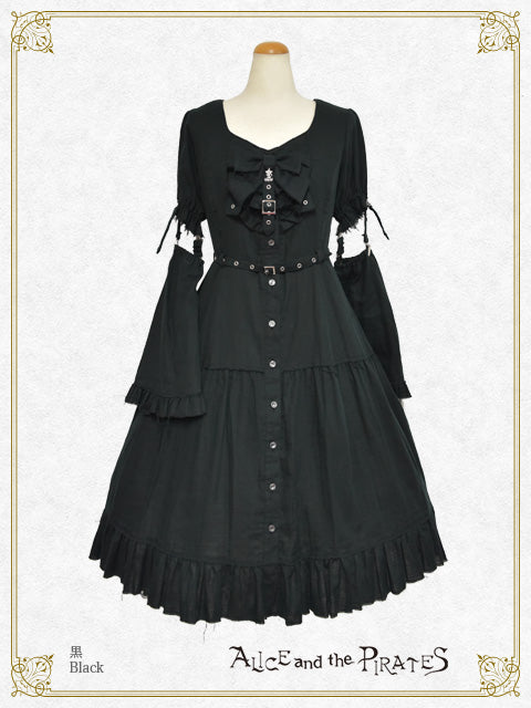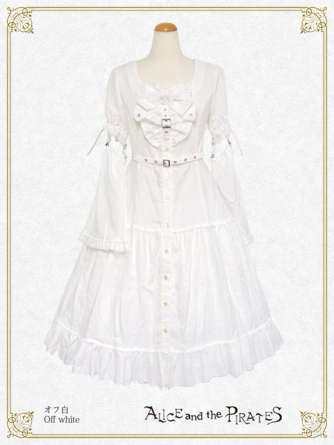 1枚でお召し頂く他、ジャンパースカートのインナーとしても活用できるワンピースは、肩部分の飾りハトメ、ベルトで繋がったアームベルトがポイント!