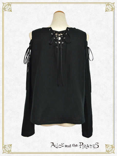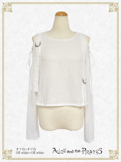 ダブルガーゼ生地を使用し、肩部分とお背中中央に編み上げおリボンをあしらったプルオーバーです。