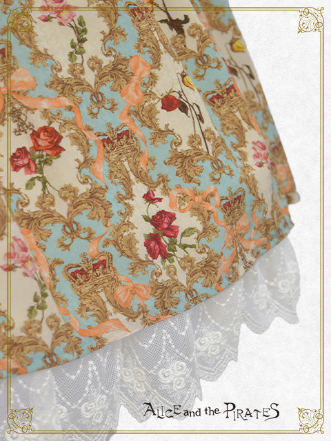 リボンが絡みつく高貴な印象のALICE and the PIRATESのオーナメントと、生命の刻を終えた薔薇の花たち。