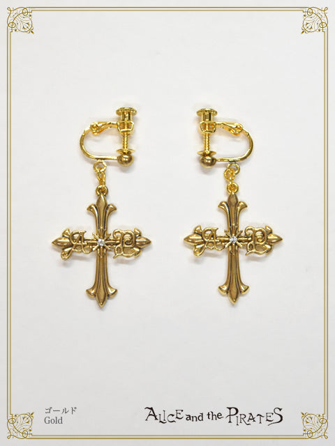 十字架にA/Pのロゴとクリスタルとあしらった、シンプルながらも重厚な雰囲気を感じさせるイヤリングです。