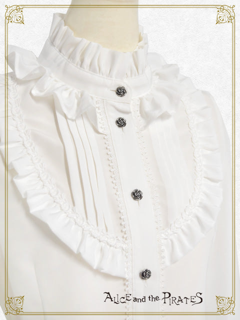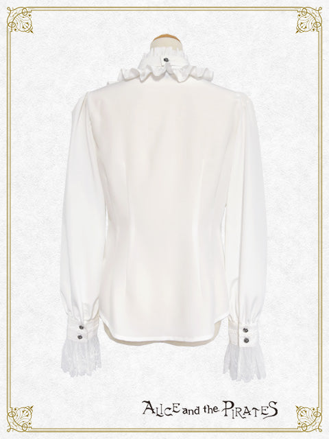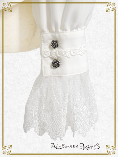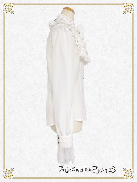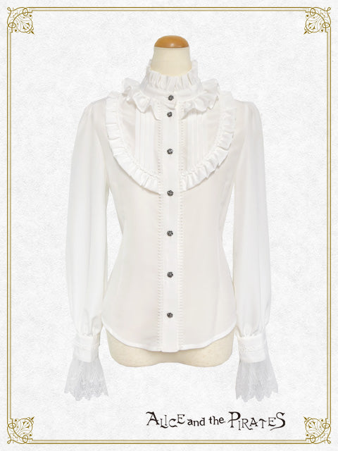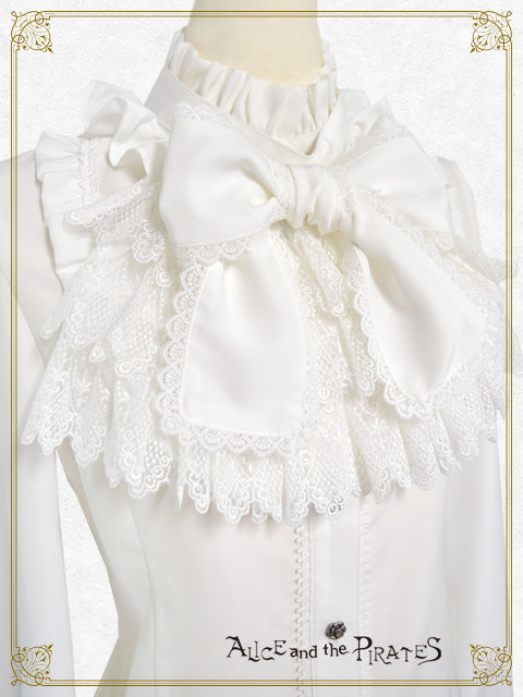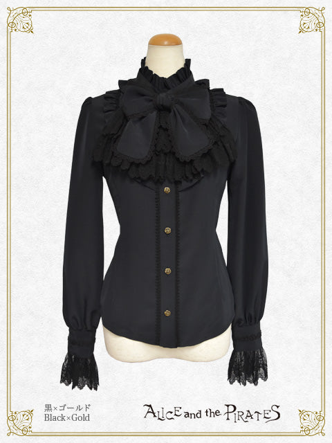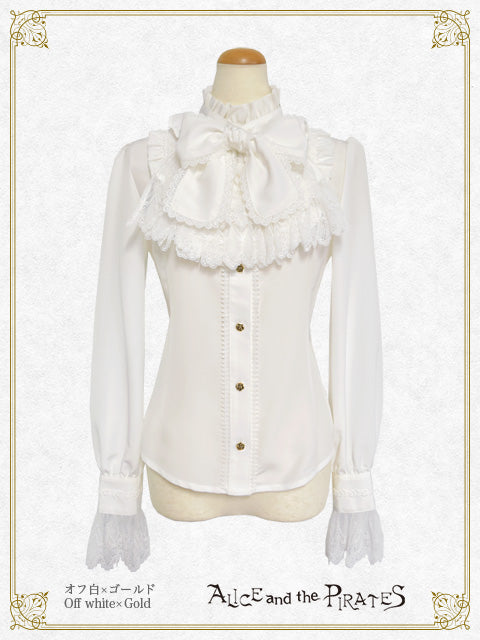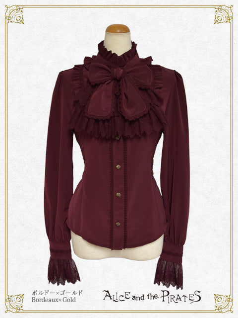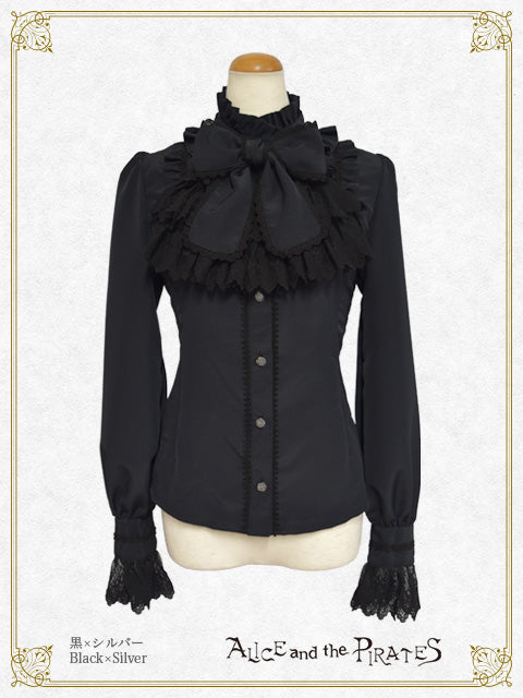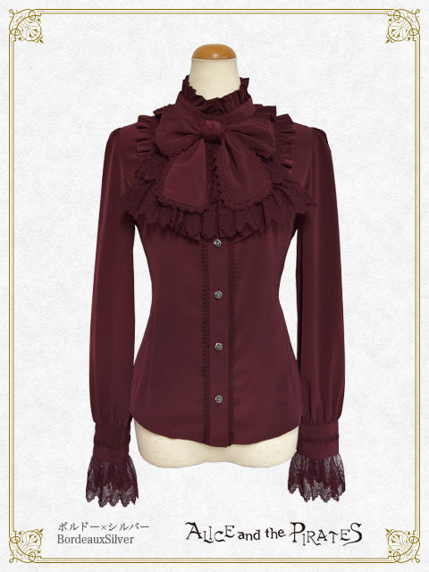 チュールレースとケミカルレースを組み合わせた、ボリューム満点のフリルジャボが首元を華やかに彩ってくれるブラウスです♪