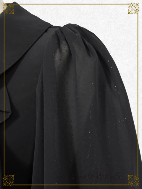 ふんわりとした腕部分はシフォンとラメチュール地を重ねた透け感のある仕様となっており、お袖口・裾にあしらわれたプリーツフリルが高貴で優雅な印象。