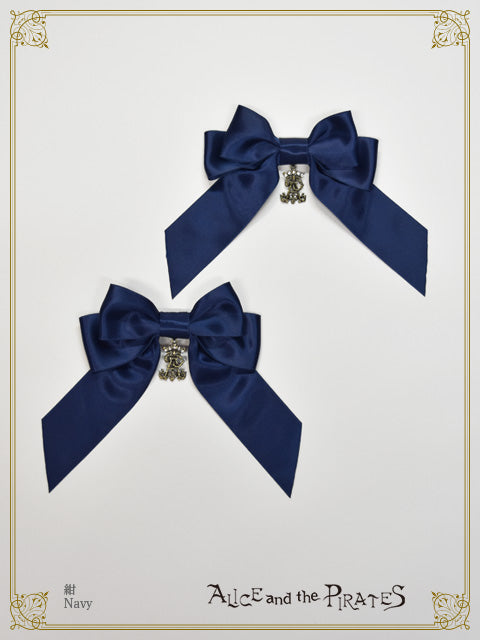 サテンおリボンにPIRATESオリジナルチャームをあしらった、2個1組のおリボンクリップです。