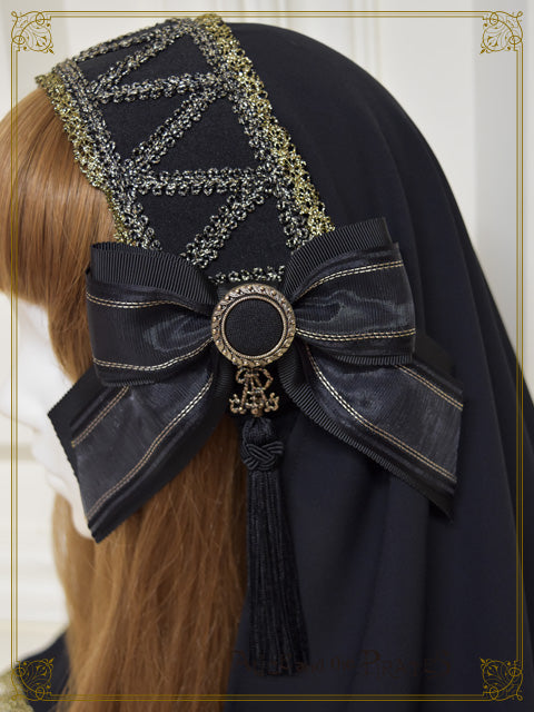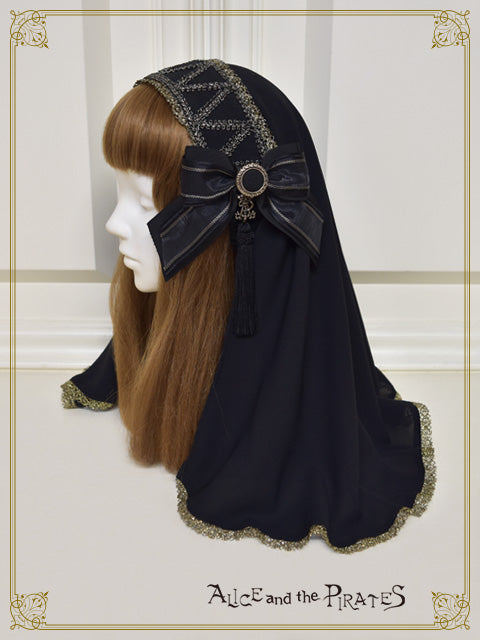 シワになりにくい楊柳生地をたっぷりと使ったカチューシャタイプのヴェールは、マットな色合いや高級感のあるパーツ遣いが神話の世界観を感じさせるアイテム。