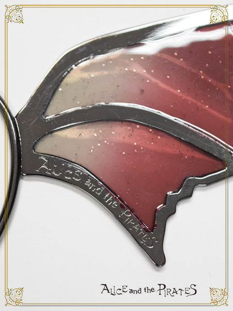ヒレのようなデザインでグラデーションカラーとラメ感が美しく、チェーンやクリスタルの装飾もあいまってゴージャスで幻想的な印象に…。