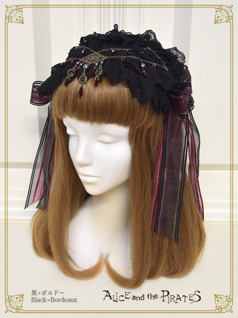 Captain Chrisが迷い込んだ深い深い海の深淵…幻想的な深海の魔女達の宴をテーマにした、クリスタルやデザインチェーン、サイドにあしらわれた二重のルーシッドリボンが煌びやかな印象のヘッドドレスカチューシャです。