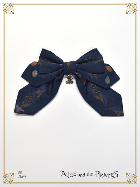 アンティークゴールドのPIRATESオリジナルチャームを中央にあしらったリボンクリップでは、大きめのサイズで存在感のあるアイテム。