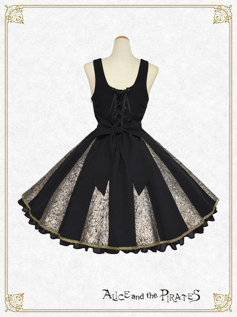 黒地にオーナメントラメジャガードの生地を組み合わせたジャンパースカートと、タッセルフリンジやラメトーションレ―スが美しい半立ち襟ケープとのセットは
