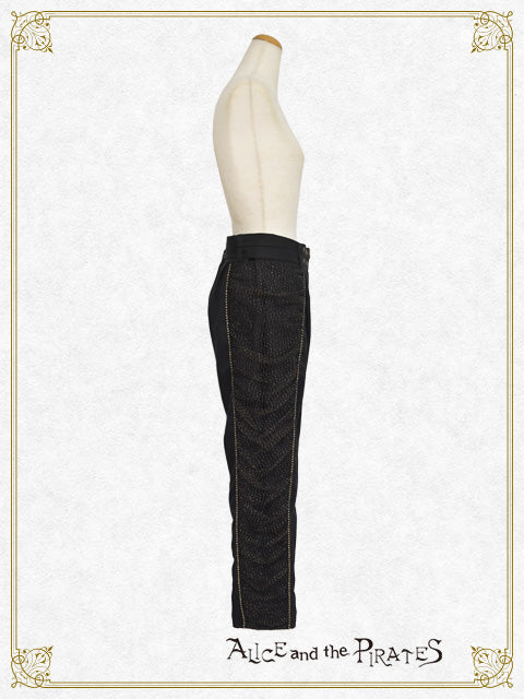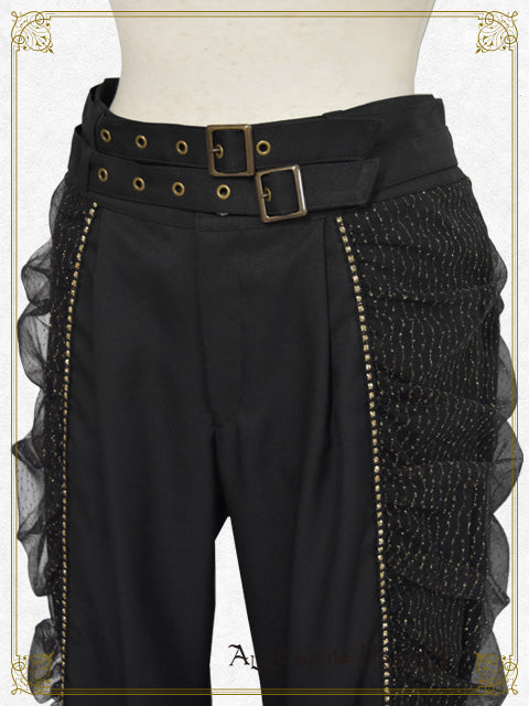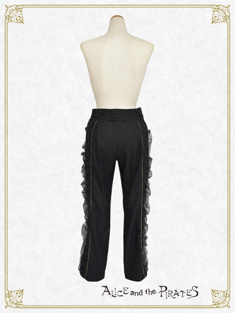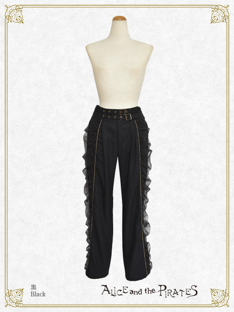 上下2段のベルト付きのロングパンツは、両サイドにゴールドラメ入りのチュールをあしらい、まるで海に漂うようような幻想的な雰囲気を演出。