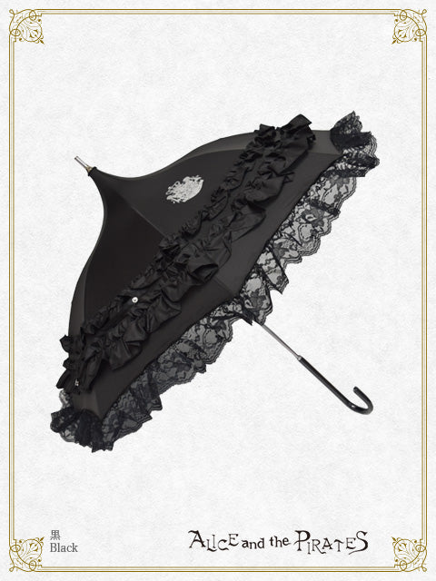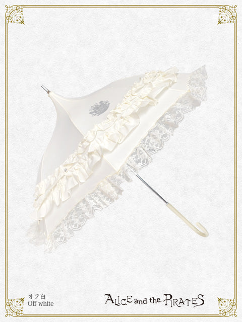 スカラップ刺繍からレースがのぞく、お上品なパゴタ型のお傘に、今回新色としてサックスが初登場です。
