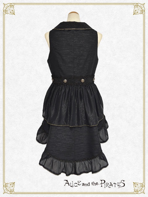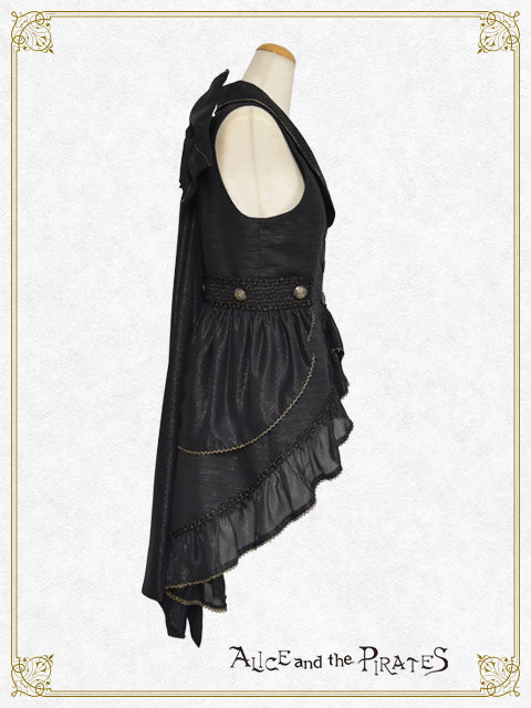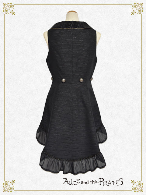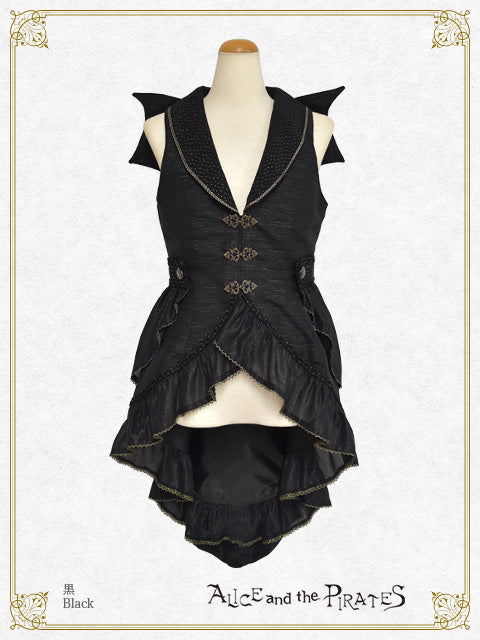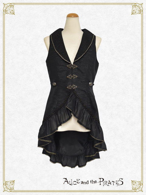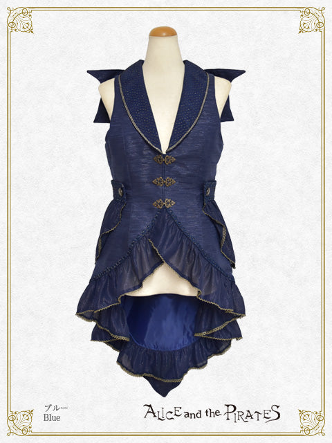 ウエストや燕尾の裾にあしらわれたジョーゼットフリルが、まるで海に漂うようにひらひらと揺れるデザインが印象的なベストです。