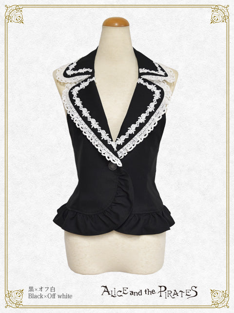 スカートスタイル・パンツスタイル問わず、コーディネートしやすいカフェベストです。