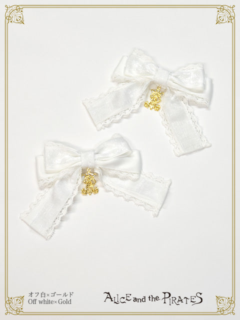 ダルサテンリボンにオーガンジーリボンを重ねた、様々なコーディネートに合わせやすいシンプルなリボンクリップです。