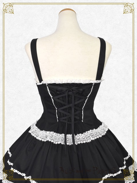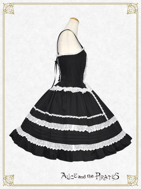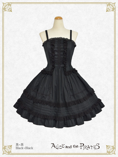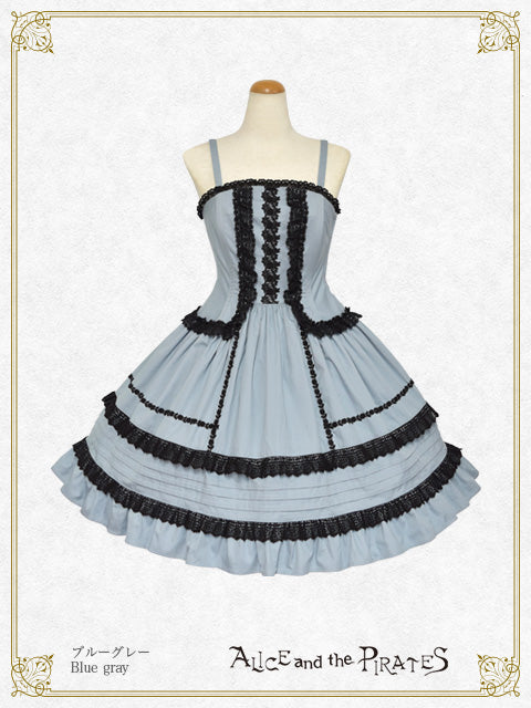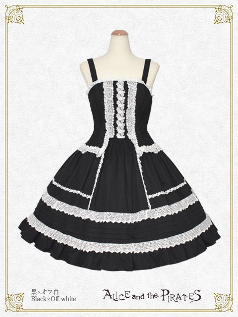 身頃部分に入ったボーンが綺麗なウエストラインを演出してくれる、PIRATES定番のジャンパースカートです。