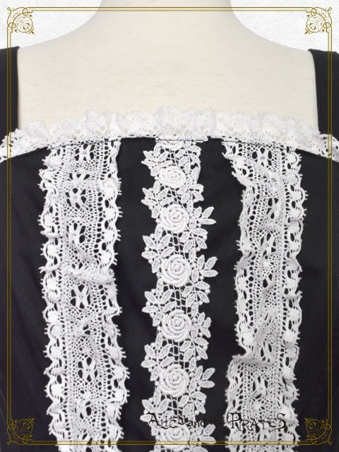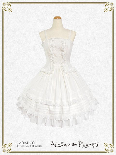 たくさんあしらわれたレースや細かなタック仕様が華やかかつお上品ながら、細身の肩紐はボタンでお取り外しも可能ですので、コルセット+スカートのように見える着こなしも可能です♪